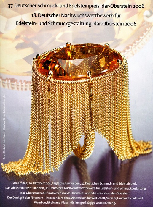Am Freitag, 20. Oktober 2006, tagte die Jury für den „37. Deutschen Schmuck- und Edelsteinpreis Idar-Oberstein 2006“ und den „18. Deutschen Nachwuchswettbewerb für Edelstein- und Schmuckgestaltung Idar-Oberstein 2006“ in der Diamant- und Edelsteinbörse Idar-Oberstein. Der Dank gilt den Förderern - insbesondere dem Ministerium für Wirtschaft, Verkehr, Landwirtschaft und Weinbau, Rheinland-Pfalz.